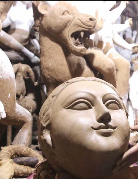 BHOPAL : दुर्गा प्रतिमाओं को अंतिम रूप देने में जुटे कारीगर, सजाए जा रहे पंडाल