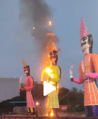 नशे में धुत्त युवक-युवती ने किया रावण दहन, सुबह 6 बजे लगाई आग